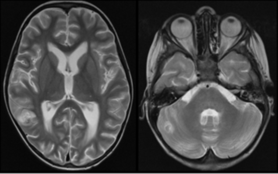 Aspergilosis del SNC en un niño de 8 años con LLA. Imagen cortesía: Prof. David Denning